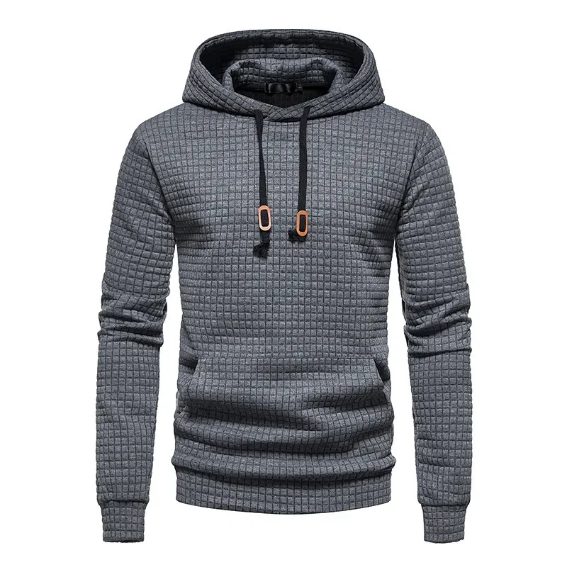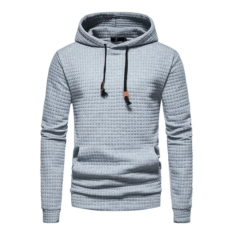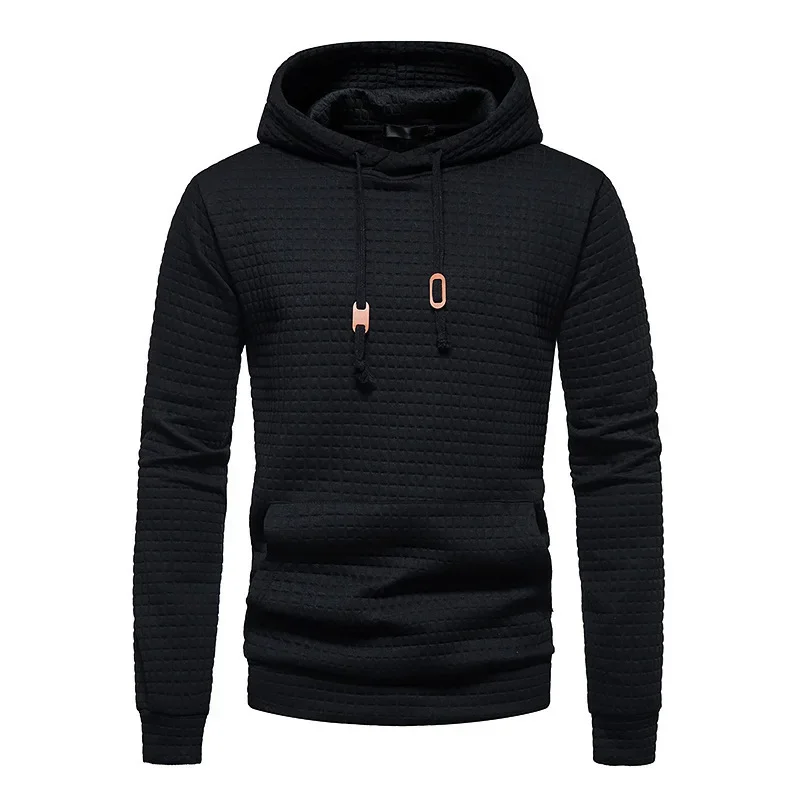 Hot Sale of the Season New Men'S Casual Hoodie Sweatshirt Embroidered Fabric Plaid Stitching Hooded Comfortable Soft Touch Stree